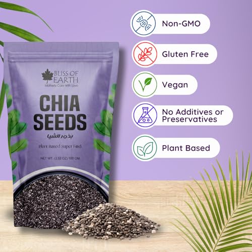 BLISS OF EARTH - بذور الشيا الخام العضوية من بليس اوف ايرث، غذاء فائق غني بالأوميجا لإنقاص الوزن، عبوة 1 كجم