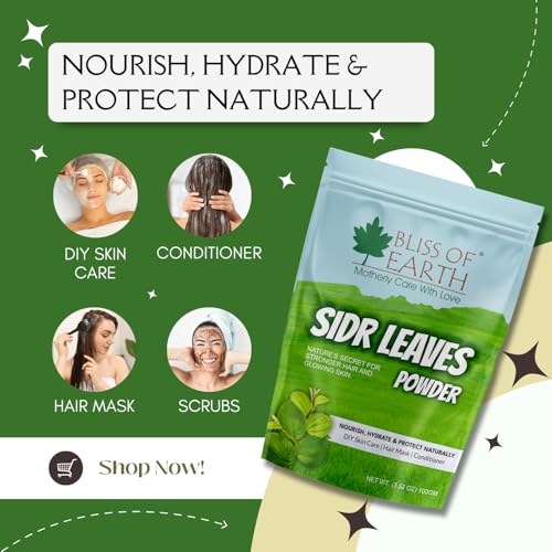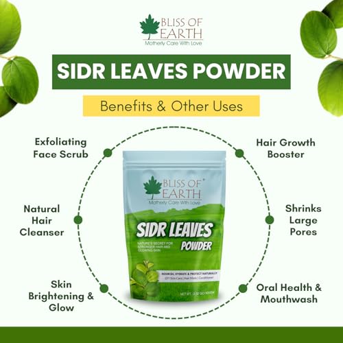 BLISS OF EARTH - مسحوق سدر للشعر من بليس اوف ايرث، 100 جم، أوراق سدر منتقاة يدويا، بودرة أوراق نقية للشعر والبشرة