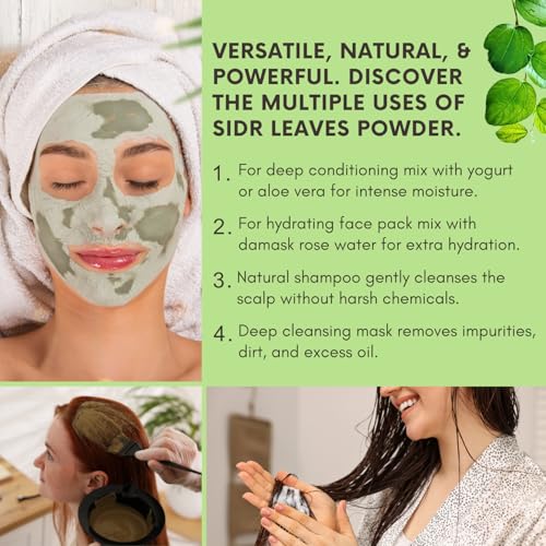 - استخدام متعدد الأغراض: يمكن استخدام مسحوق السدر الخاص بنا لنمو الشعر كمنظف طبيعي للشعر أو قناع شعر عشبي أو حزمة وجه مهدئة للعناية بالبشرة.