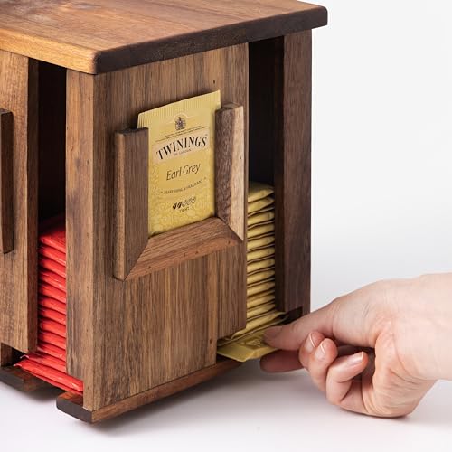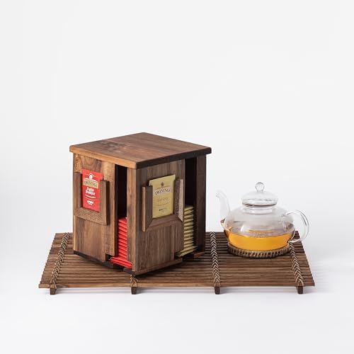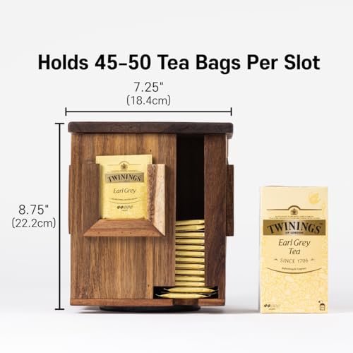 Blissli - منظم اكياس الشاي الدوار من بليسلي - صندوق تخزين من خشب الاكاسيا بـ4 جوانب للمنزل او المكتب
