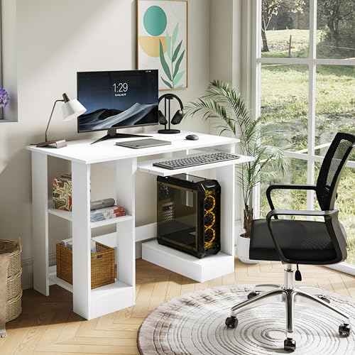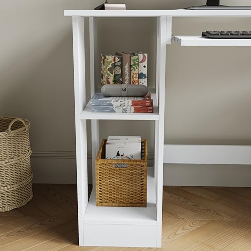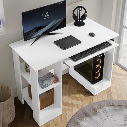 Blisswood - مكتب منزلي من بليسوود كمبيوتر ابيض مع ارفف وصينية كيبورد منزلقة للكمبيوتر واللاب توب للكتابة ومحطة العمل وغرفة النوم واثاث الدراسة 90 × 55 72 سم .
