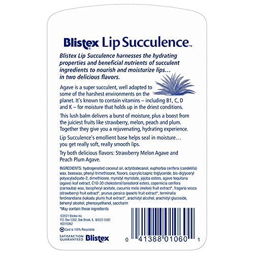 Blistex - مرطب وبلسم شفاه غني برائحة الفراولة والبطيخ والخوخ والبرقوق مع الاغاف المرطب من بليستيكس، 2 قطعة بوزن 4.25 جم لكل منهما - عبوة واحدة