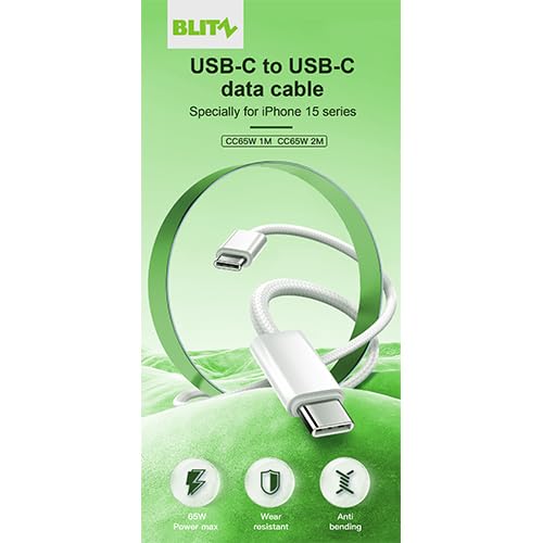 BLITZ - كابل شحن سريع 65 وات USB-C إلى USB-C من بليتز، بطول 2 م (6.6 قدم) - 5 أمبير 100 وات بتقنية توصيل الطاقة، متوافق مع ماك بوك برو وديل اكس بي اس ونينتندو سويتش - موصلات معززة، خالي من التشابك (أسود)