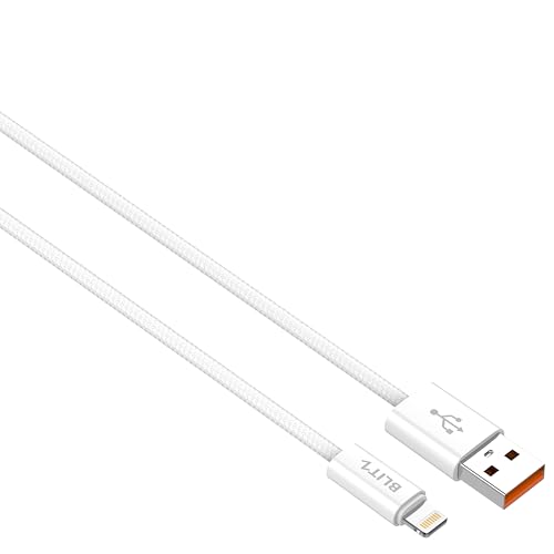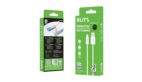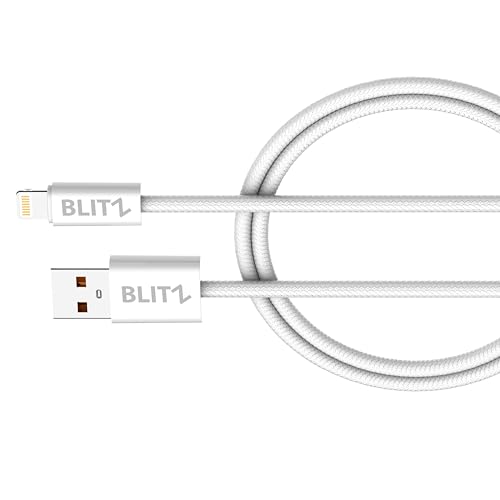 BLITZ - كابل BUL25W من USB إلى لايتنينج بغلاف مضفر لنقل بيانات عالي السرعة وشحن سريع لأجهزة الآيفون والاي باد من بليتز، طول 1 م، أبيض