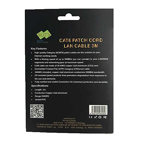 Generic - كابل زوجي ملتوي غير مدرع كات 6 من بليتز - 3 متر