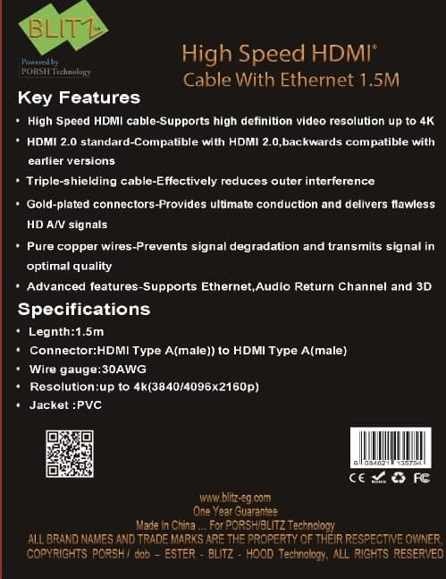 BLITZ - كابل HDMI بطول 1.5 متر من بليتز، لشاشة عرض