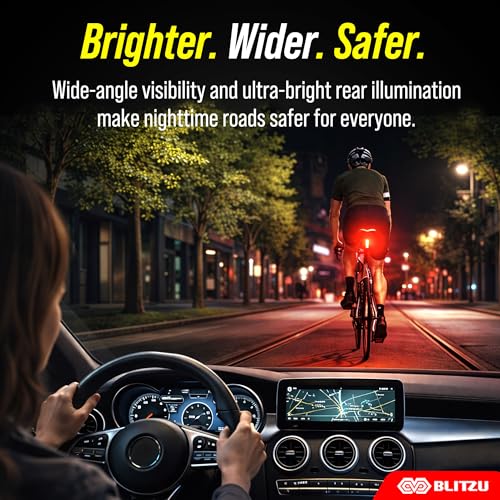 BLITZU - لمبة فانوس خلفي للدراجة قابل لإعادة الشحن بمنفذ USB سايبورج 120T من بليتزو