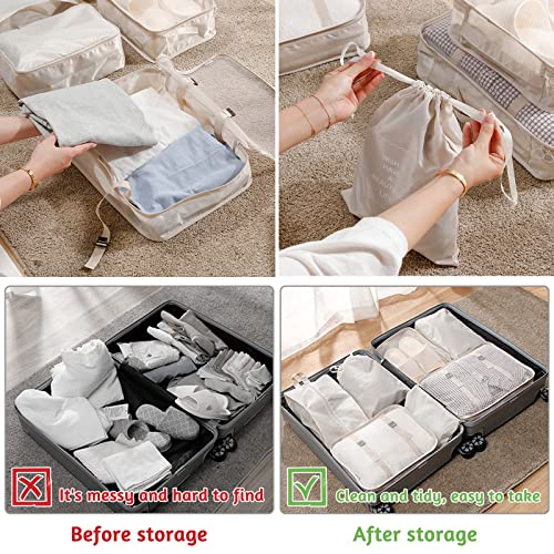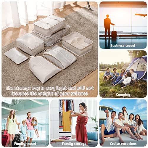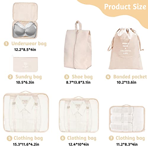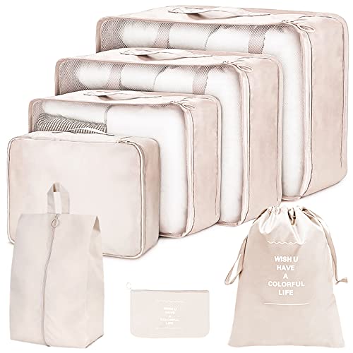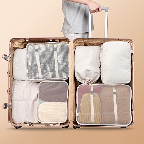 BLLREMIPSUR - مجموعة منظم شنط السفر من 7 قطع، منظم سفر متعدد الوظائف، شنط تعبئة لشنط السفر ومنظمات التعبئة والحقائب الاساسية لاكسسوارات السفر، قماش اكسفورد، من BLLEMEBSUR، بيج