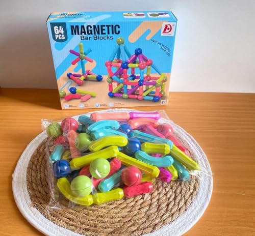 Generic - مكعبات بناء تحتوي على عصي ملونة + كرات مكونة من 64 قطعة تتضمن كتالوج افكار + حرية إنشاء اشكال جديدة يمكنها تشكيل حروف وارقام