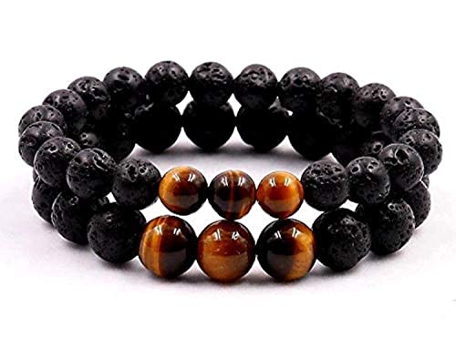 Other - مجموعة من قطعتين الحجر البركاني وحجر عين النمر مقاس 6 ملم و 8 للجنسين