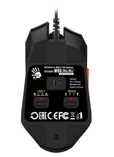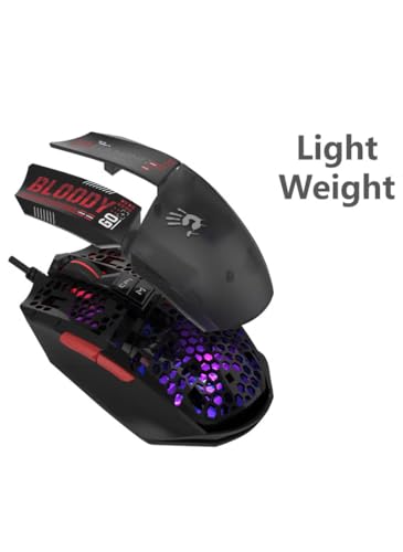 Generic - ماوس ألعاب بلودي W60 ماكس ميني بإضاءة RGB، تصميم شبكي مع غلاف إضافي قابل للإزالة، مفعل بـ 4 أنوية، حساس BC3332-A/دقة 12,000 CPI/ استجابة 2000Hz، ماكرو 4 ميجا، شرائط مجانية مقاومة للعرق، برنامج تشغيل