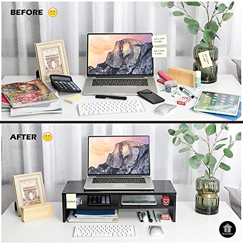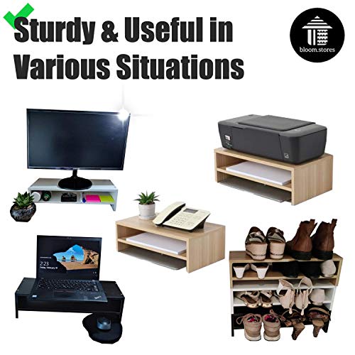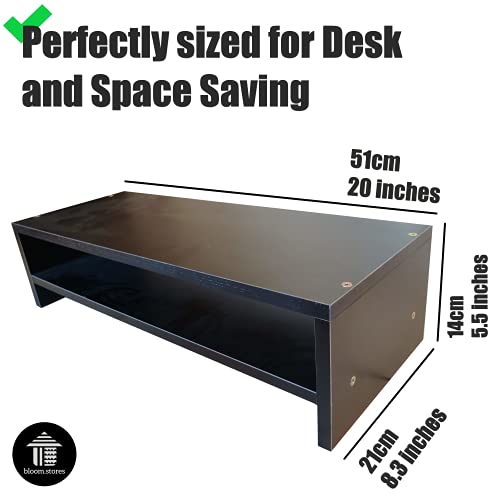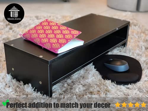 HOME 360 - حامل شاشة للكمبيوتر المكتبي والطابعة واللابتوب من بلوم ستورز | حامل كمبيوتر خشبي مريح بطبقتين | يوفر المساحة ويعزز الفائدة | بسيط وجميل وقوي (اسود رسمي)