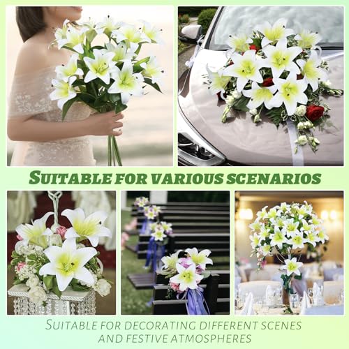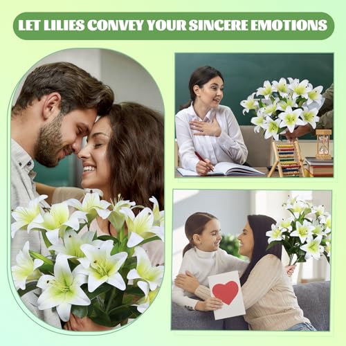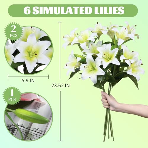- 【 أناقة بمظهر طبيعي】تحتوي كل مجموعة على 6 سيقان زنبق نابضة بالحياة (بطول 23.6 انش) مع 12 زهرة مزهرة وإجمالي 6 براعم (2 زهرة وبرعم واحد لكل منهما)، تتميز ببتلات بألوان متدرجة وتفاصيل حبوب اللقاح الرقيقة وأوراق خضراء نابضة بالحياة لديكور المنزل.