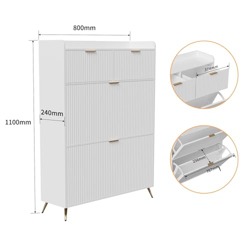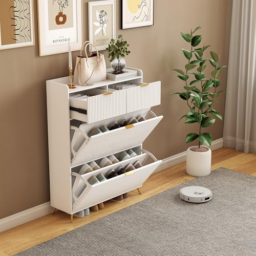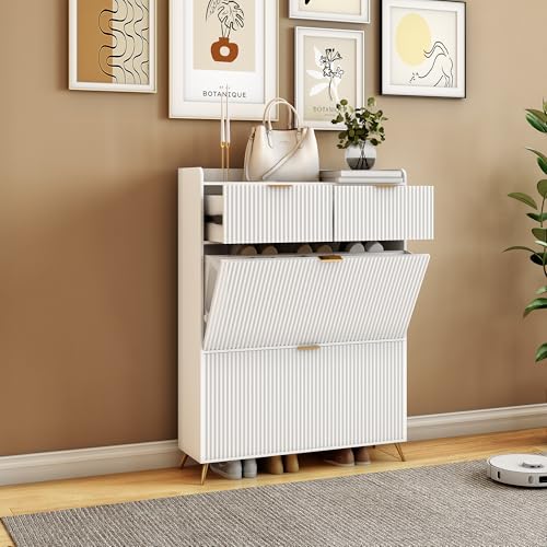 BLSYHDH - رف أحذية عملي، خزانة أحذية خشبية، أثاث المدخل، خزانة أحذية مع قسمين ودرجين لغرفة النوم وغرفة المعيشة والمدخل من BLSYHDH (رف أحذية (أبيض)