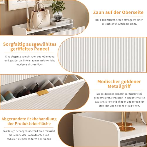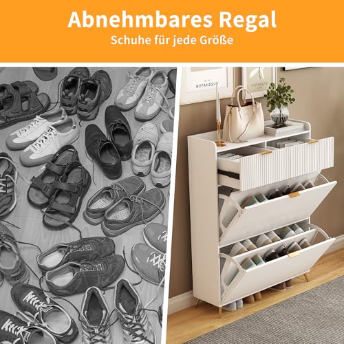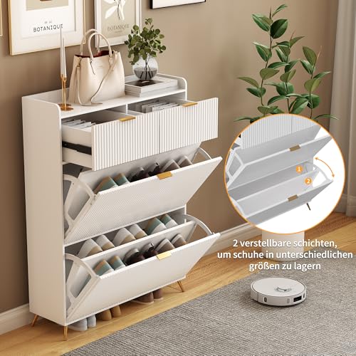 - - مساحة تخزين متعدد الاستخدامات: خزانة أحذية للمدخل. تتميز خزانة الأحذية هذه بدرجين كبيرين وخزانتين بغطاء مفصل، مما يوفر مساحة تخزين واسعة. الأدراج مثالية لتخزين الأشياء اليومية الصغيرة مثل المفاتيح والمحفظة والموبايل، بينما يمكن للخزانات ذات الغطاء القابل للطي استيعاب أنواع مختلفة من الأحذية بسهولة. سواء كانت للأحذية أو غيرها من الأغراض المختلفة، فإن كل شيء سيكون منظم بشكل مثالي.
