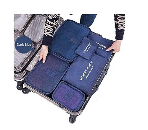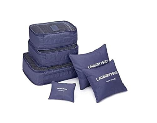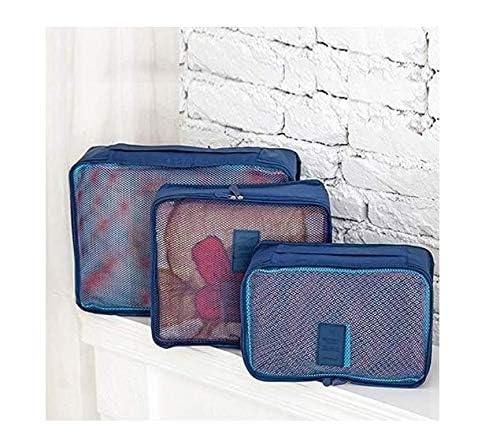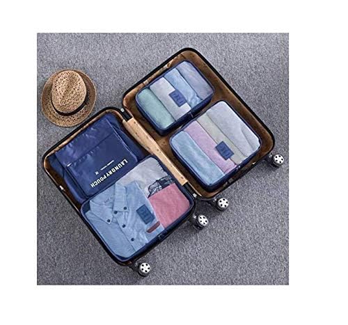 Other - مجموعة شنط منظمة لتخزين الملابس للسفر مقاومة للماء على شكل مكعبات مصنوعة من قماش اكسفورد 6 قطع ازرق متعدد الألوان اذر