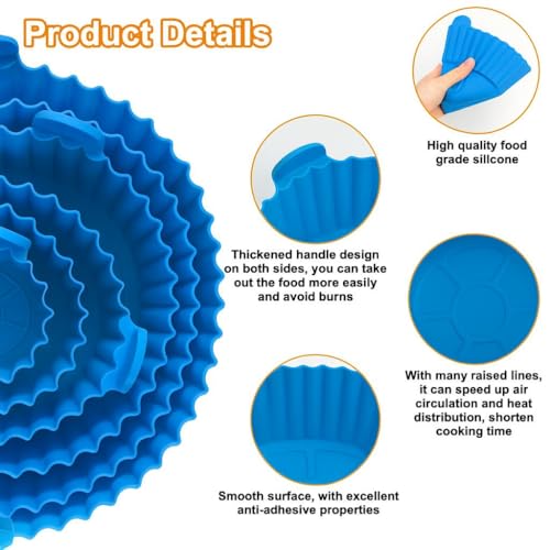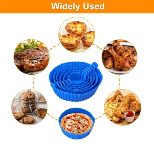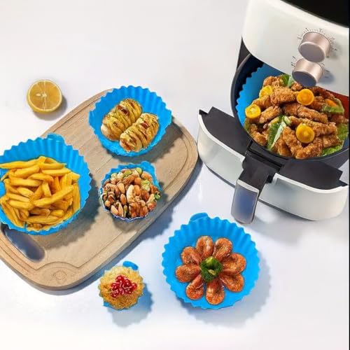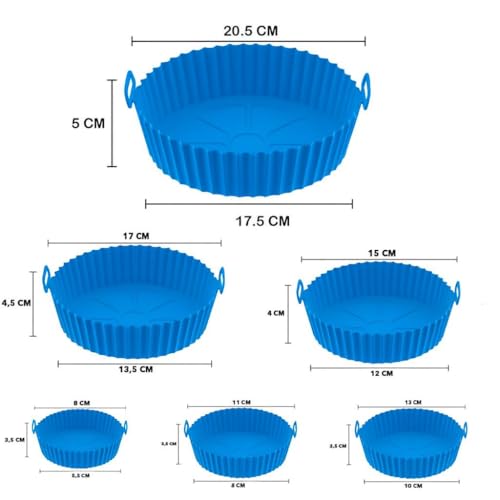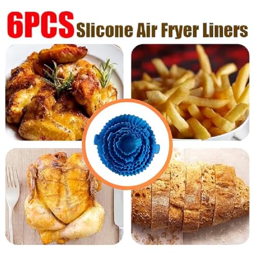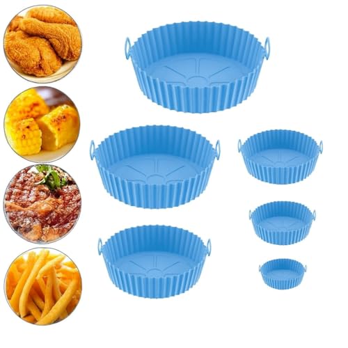 Generic - بطانات مقلاة هوائية من السيليكون، صواني خبز غير لاصقة قابلة لإعادة الاستخدام بأحجام متعددة، مقاومة للحرارة وسهلة التنظيف ومثالية للقلايات والأفران والميكروويف من بلو، طقم من 6 قطع