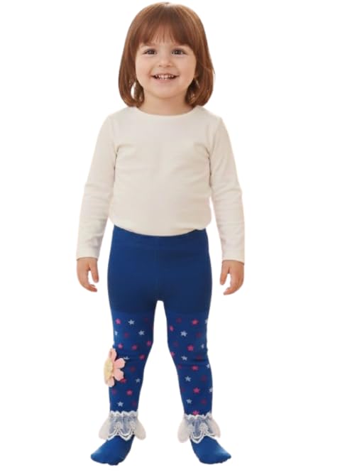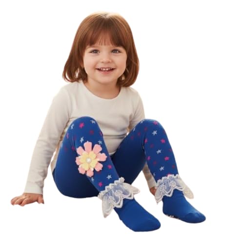 Generic - شراب كولون أطفال باللون الأزرق مع تصميم زهور ونجوم، جوارب بكشكش من الدانتيل