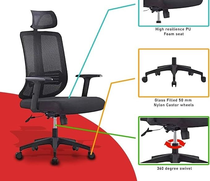 - 1. كرسي تنفيذي مريح مع تصميم مريح لدعم أسفل الظهر مع مسند رأس