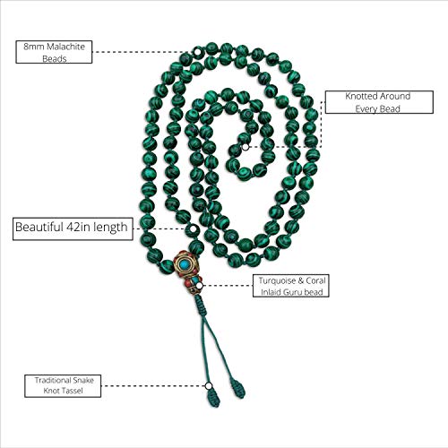 BLUE BOHO DESIGNS - عقد مالا مع احجار علاجية للتامل والاحجار الكريمة والعقيق اليماني، للبالغين من الجنسين