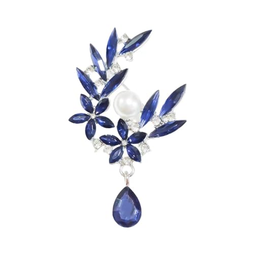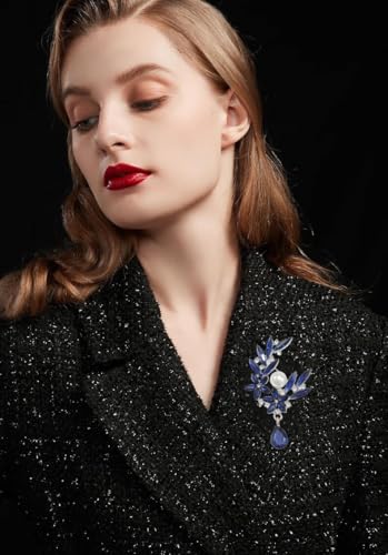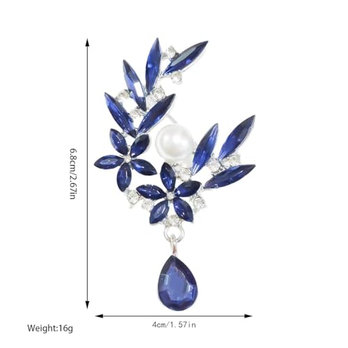 Vurotry - بروش زهرة كريستال زرقاء للنساء، دمعة حجر الراين قلادة بروش زهرة اللؤلؤ، بروش رائع ريترو زهرة بروش ازياء فساتين بدلات بروك اكسسوارات للنساء