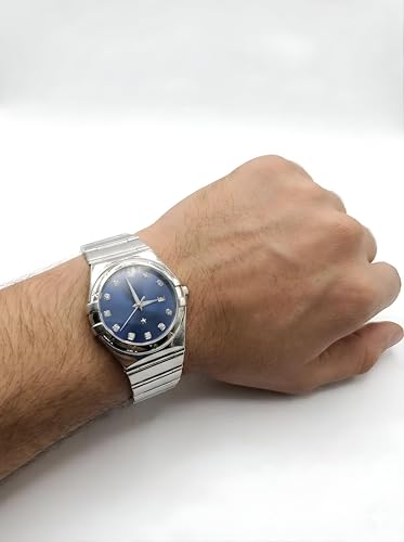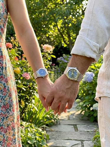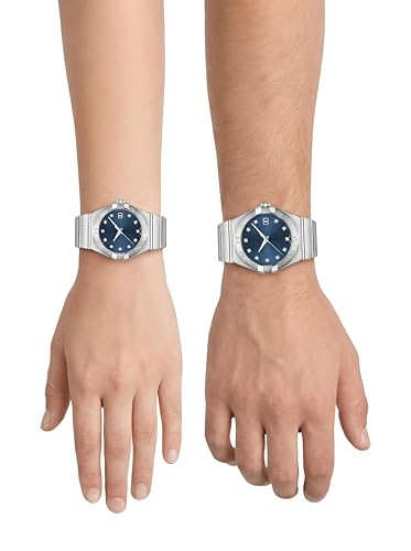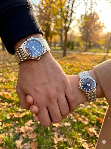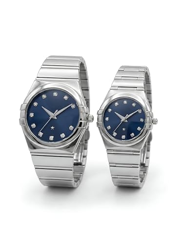 Generic - ساعات بمينا زرقاء - مجموعة متطابقة متطورة للأزواج، تتميز بهيكل من الستانلس ستيل ومؤشرات كريستالية وسوار معدني مريح.
