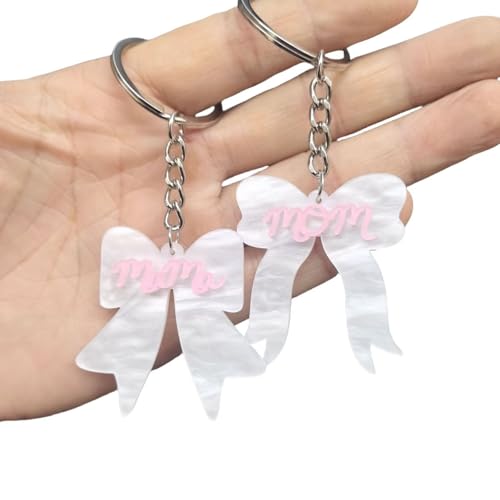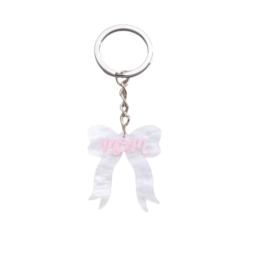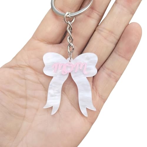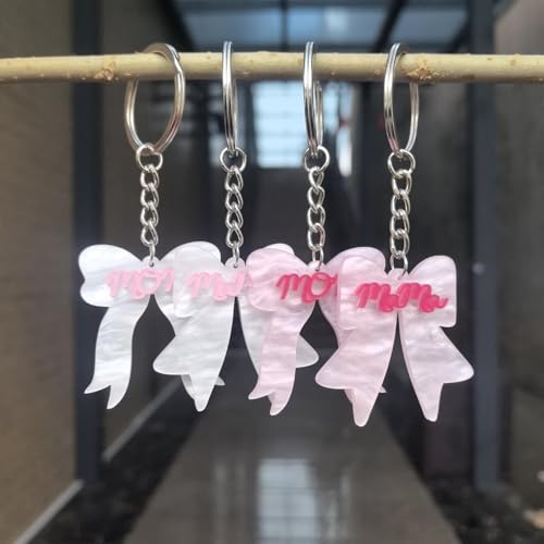 Blue Drop - سلسلة مفاتيح بفيونكة زرقاء متدلية باللونين البينك والابيض بتصميم عبارة «MOM MAMA» من الاكريليك، اكسسوارات هدايا للام