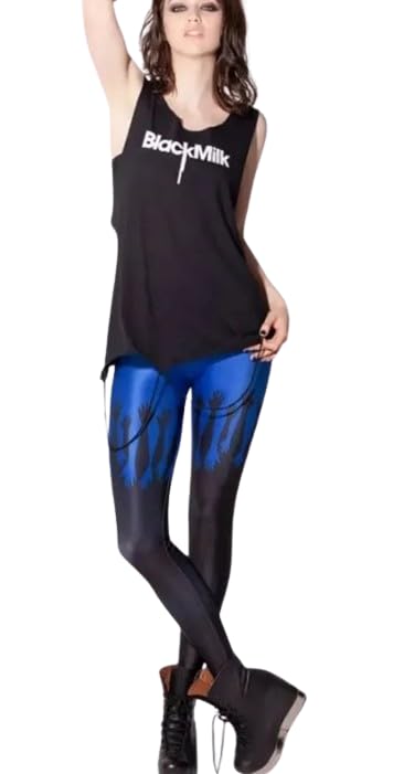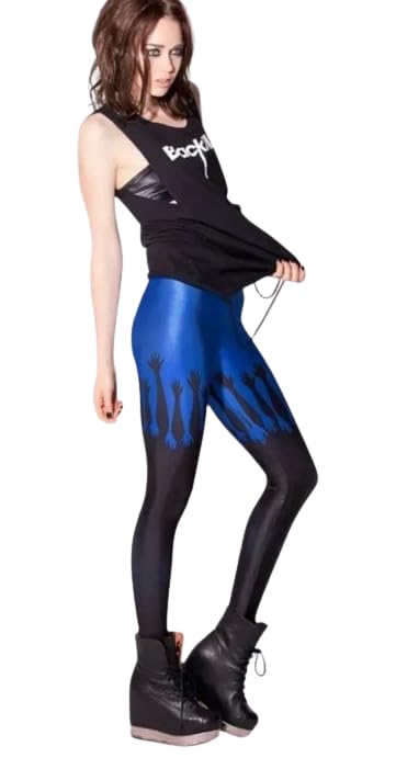 Generic - بنطلون اسود سكينى بطباعة يد زرقاء للنساء
