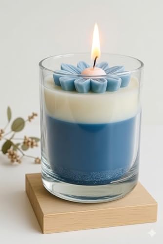 Generic - شمعة معطرة برائحة المحيط الأزرق، شمع الصويا، مع غطاء زهور، 150 غرام، احتراق طويل الأمد، للإهداء والاسترخاء والعلاج العطري