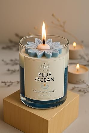 - رائحة المحيط الأزرق المنعشة: شمعة معطرة فاخرة تجلب أجواء البحر المنعشة إلى منزلك، مثالية للاسترخاء والعلاج العطري وخلق أجواء هادئة ومريحة