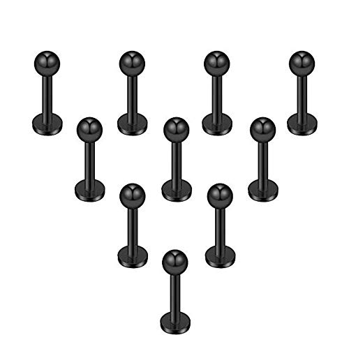 blue palm jewelry - اقراط من الستانلس ستيل قياس 10-16 بتصنيف IP لمقاومة المياه والغبار 316L مقاس 3 ملم، حلقة شفاه لابريت مونرو / زنمة الاذن / غضروف الاذن (اسود)
