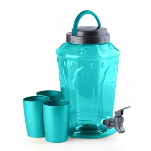 Generic - موزع مشروبات بلاستيكي أزرق مع صنبور وأكواب، حامل علوي، تصميم زجاجي منقوش