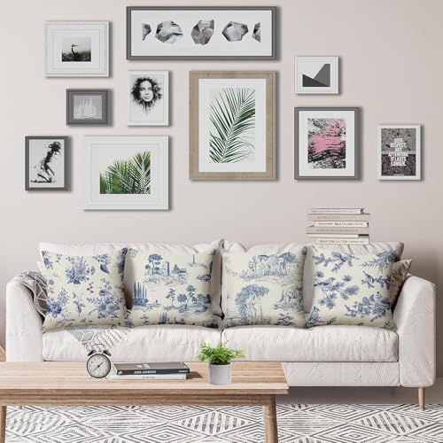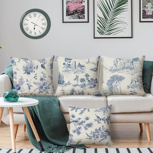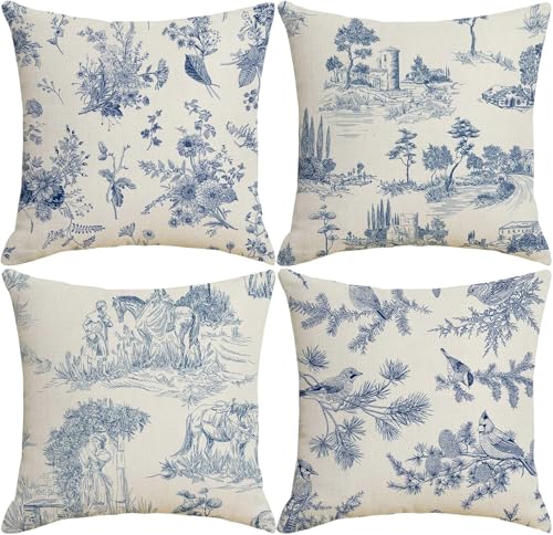 Generic - أكياس مخدات زرقاء مقاس 45 × 45 سم، مجموعة من 4 أكياس مخدات بتصميم ريفي فرنسي عتيق، أكياس مخدات مزخرفة للكنبة وغرفة المعيشة