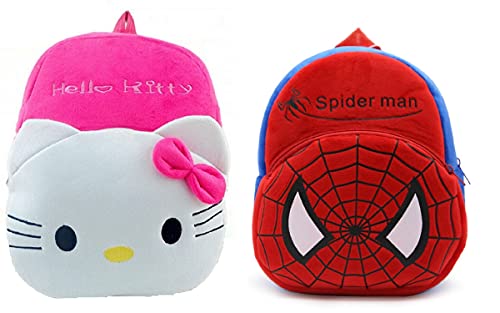 Blue Tree - شنطة ظهر مدرسية للاطفال من القطيفة الناعمة بتصميم كرتوني، شنطة سفر صغيرة للبنات والاولاد الصغار بتصميم هالو كيتي وسبايدرمان، أحمر