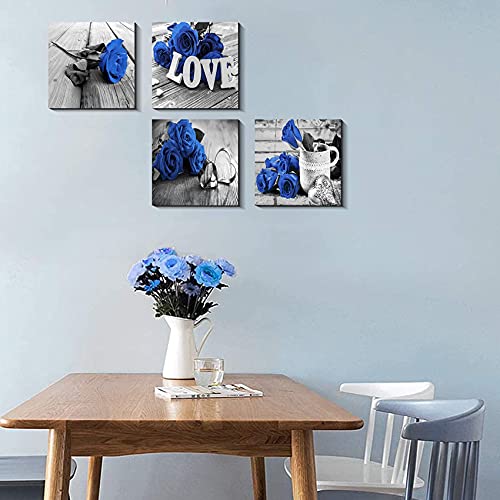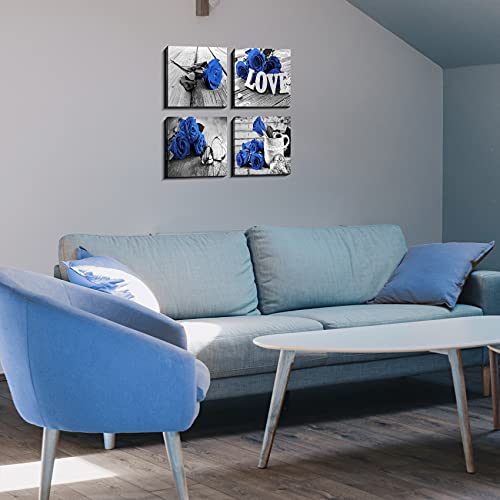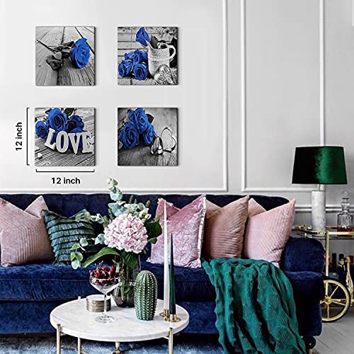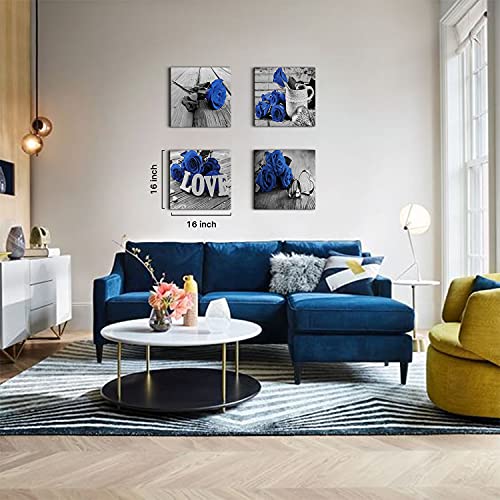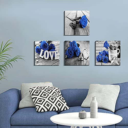 YOOOAHU - لوحات جدارية فنية، طباعة على القماش لغرفة المعيشة والنوم والحمام، باللون الأزرق الملكي والأسود، مقاس 30.48 × 30.48 سم، مجموعة من 4 قطع