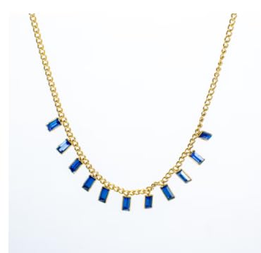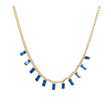 Generic - عقد بقلادة من الستانلس ستيل مزين بحجر الزركونيا الازرق