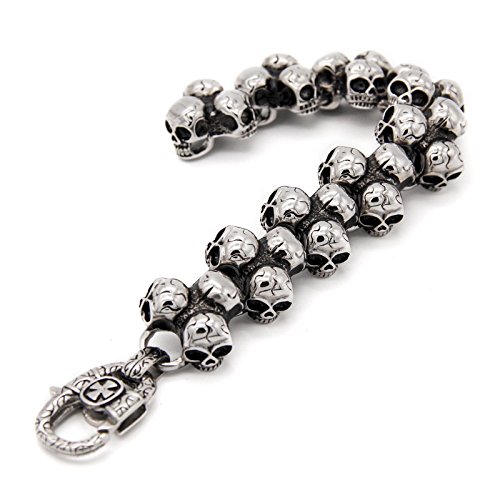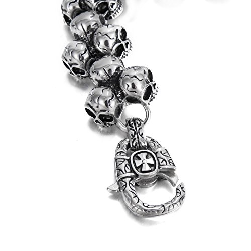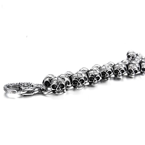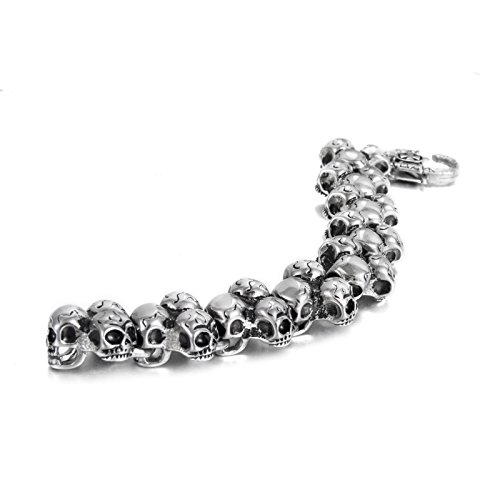 BlueFox - سوار حلقي من التيتانيوم الصلب بنمط جماجم للرجال من بلو فوكس، قطعة واحدة 8.5 بوصة, معدن