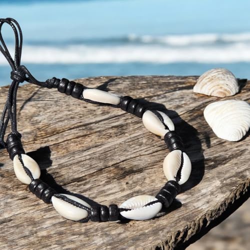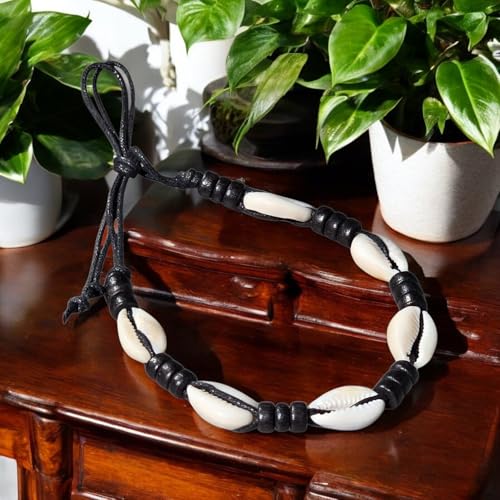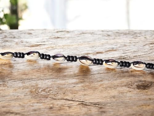 BlueRica - سوار خلخال على حبل اسود مع خرز خشبي بني من كاوري، للبالغين من الجنسين