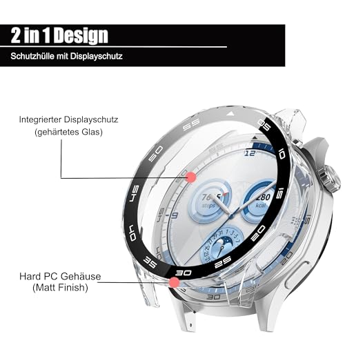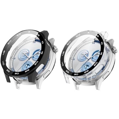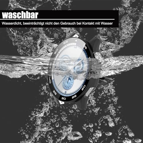 Blueshaweu - حافظة حماية من بلوشايو متوافقة مع ساعة هواوي جي تي 5 الذكية 46 ملم، حافظة صلبة من البولي كربونات مع شاشة حماية زجاجية متوافقة مع ساعة هواوي جي تي 5 46 ملم (ليس جي تي 5 برو) (مع مقياس اسود +
