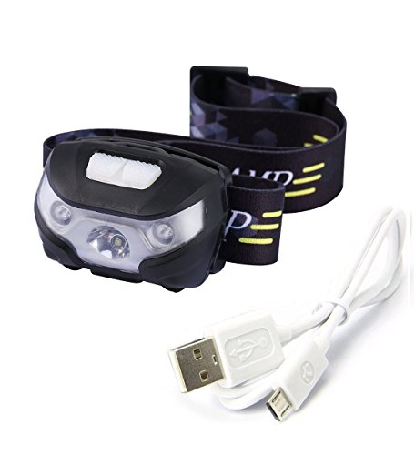 WIROJ - مصباح امامي ليد 200 لومن من بلو صن شاين، كشاف اضاءة قابل لاعادة الشحن، بكيبل USB متضمن، اضواء حمراء، 5 اوضاع، 2.85 اونصة، للجري بدون استخدام اليدين والمشي لمسافات طويلة والتخييم وصيد الاسماك (اسود)