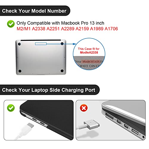 - 【تحقق من الطراز الخاص بك】متوافق فقط مع حافظة ماك بوك برو 13 انش إصدار 2022-2017 A2338 M2/M1Chip A2289 A2251 A2159 A1989 A1706 A1708، يرجى التحقق من رقم الموديل "AXXXX" الموجود على ظهر اللاب توب قبل عملية الشراء الخاصة بك.