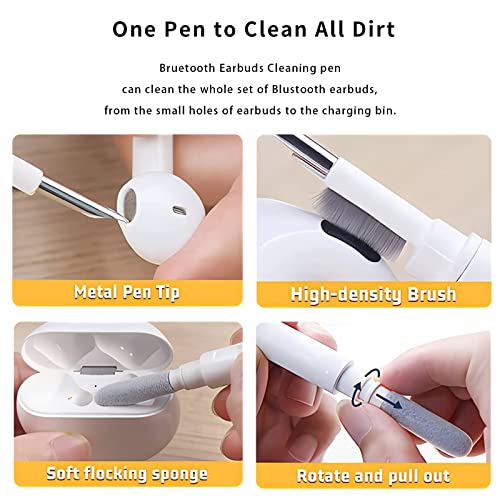 Alibiffy - قلم تنظيف سماعات أذن بلوتوث، مجموعة تنظيف لسماعات ايربودز برو، أداة تنظيف متعددة الوظائف مع فرشاة ناعمة مناسبة لسماعات الرأس والكيبورد والموبايل وعدسة الكاميرا، أبيض
