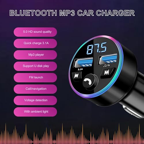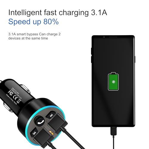 - 【جهاز إرسال اف ام للسيارة بلوتوث】مستقبل بلوتوث 12 فولت للسيارة يمكنه شحن 2 جهاز في وقت واحد مع 2 منفذ USB نوع A. الشحن السريع 3.1 امبير أسرع 4 مرات من ناقل البلوتوث القياسي للسيارة (AUX). تعرض الشاشة الرقمية لمحول السيارة بتقنية البلوتوث مراقبة الجهد في الوقت الفعلي، وتحمي أجهزتك من ارتفاع درجة الحرارة والجهد الزائد لقيادة أكثر أمانًا.