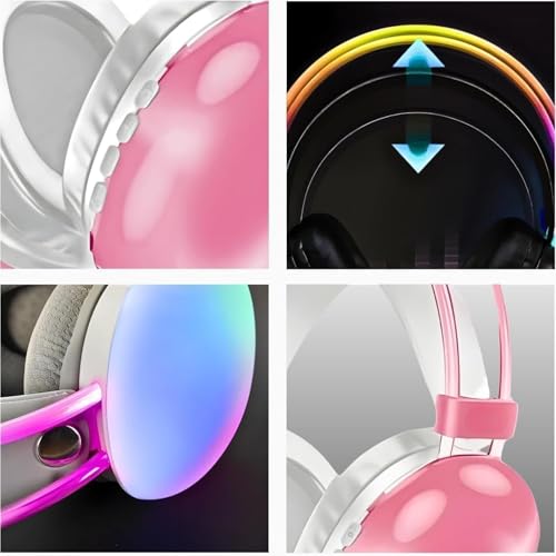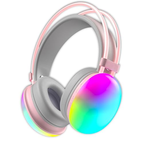 Generic - سماعات رأس بلوتوث فوق الأذن B30 ار جي بي لاسلكية، راديو اف ام مع ميكروفون وإضاءة ليد رائعة، سماعات رأس كبيرة للألعاب مع موسيقى ستيريو، تدعم بطاقة SD/AUX/نوع سي مع وسادات أذن مريحة (وردي)