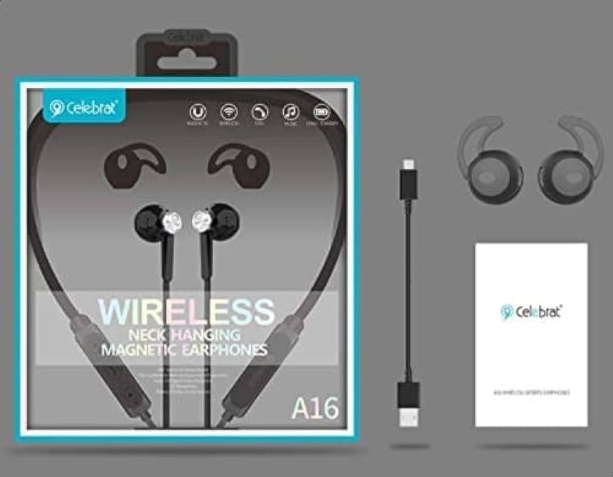 Generic - سماعة رأس بلوتوث سيليبريت A16 مغناطيسية على الرقبة، عالية الدقة، استمتع بجودة لا مثيل لها للموسيقى والمكالمات. سماعة بلوتوث بلون أسود D