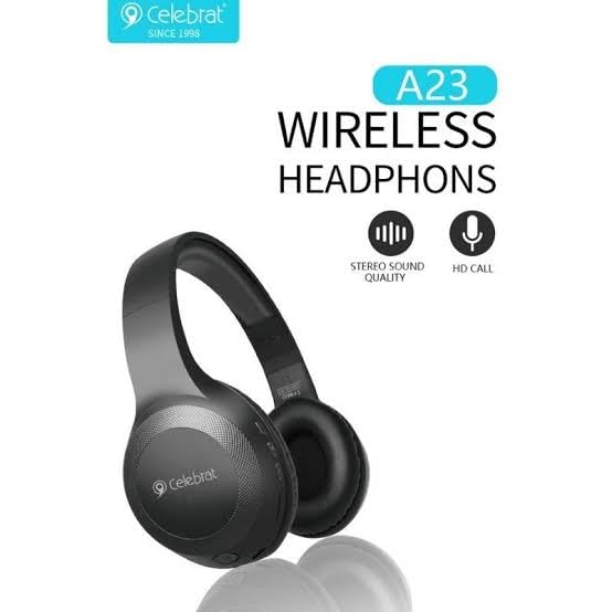 Generic - هيدفون بلوتوث – Celebrat – موديل – A23 - تعمل علي الهاتف - قابلة للشحن - ميكروفون مدمج – راديو – مدخل كارت ميموري - فوق الاذن – لون (اسود)