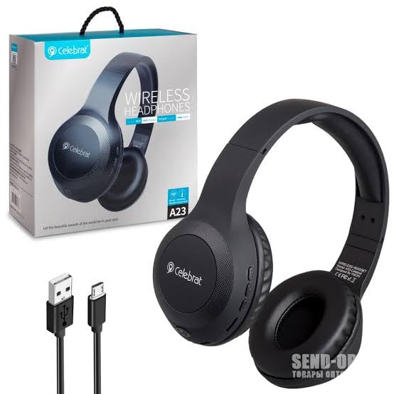 - هيدفون بلوتوث – Celebrat – موديل – A23 - تعمل علي الهاتف - قابلة للشحن - ميكروفون مدمج – راديو – مدخل كارت ميموري - فوق الاذن – لون (اسود)