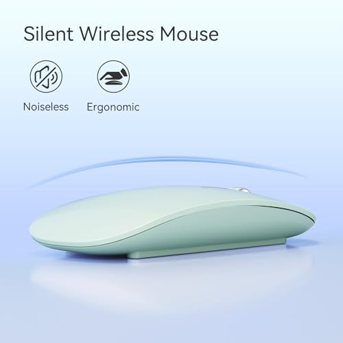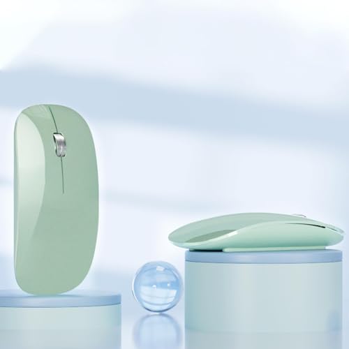 AmeFanie - ماوس بلوتوث لاسلكي قابل لاعادة الشحن، ماوس لاسلكي صامت ثلاثي الاوضاع (بلوتوث مزدوج 5.1 + 2.4 جيجاهرتز) مع مستقبل USB لاجهزة اللابتوب/ايباد/الكمبيوتر/ماك، رمادي (اخضر)