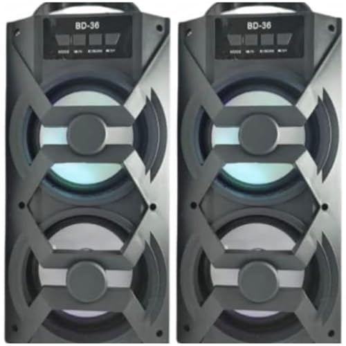Generic - مكبر صوت بلوتوث BD-36 مع صوت ستيريو مزدوج، صوت جهوري قوي، دعم USB/الذاكرة، حامل موبايل، وقت تشغيل طويل، مكبر صوت محمول بدون صندوق للأنشطة المنزلية والخارجية (عبوة من قطعتين)
