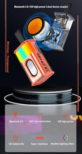 Generic - صب بلوتوث / مكبر صوت بلوتوث ، مكبرات صوت لاسلكية صغيرة شفافة مع ضوء عميق وصوت عالي الدقة